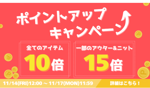【毎週金曜日】開催キャンペーン ⇒毎週金曜日お昼12時にクーポンコードを発行 ⇒今回はクーポン配布はなく、ポイントアップキャンペーン最大15%OFFを実施中(11/17 11:59まで)
