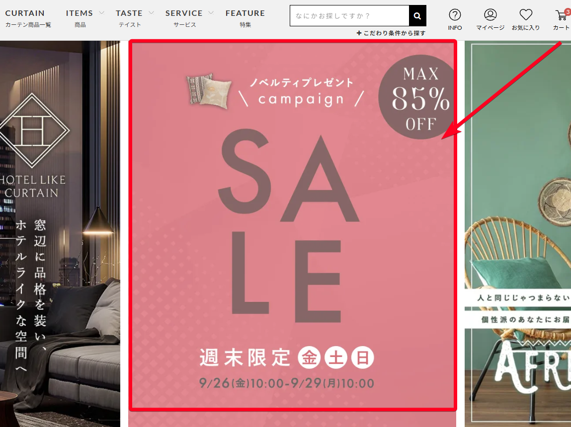 パーフェクトスペースカーテン館では、毎週金・土・日・月にお得なセールを実施しています。