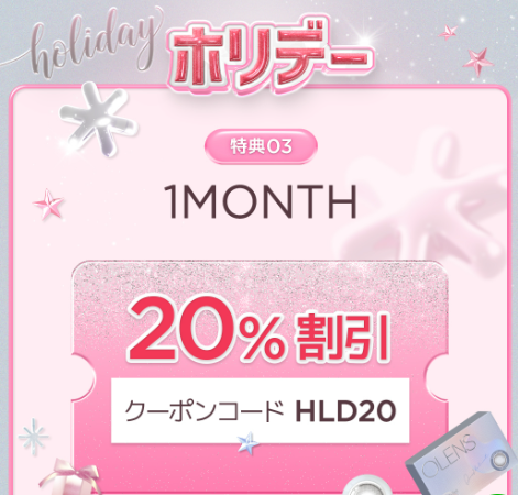 クーポンコード「HLD20」を使うと、対象の人気シリーズのカラコンが全品20%OFFに。