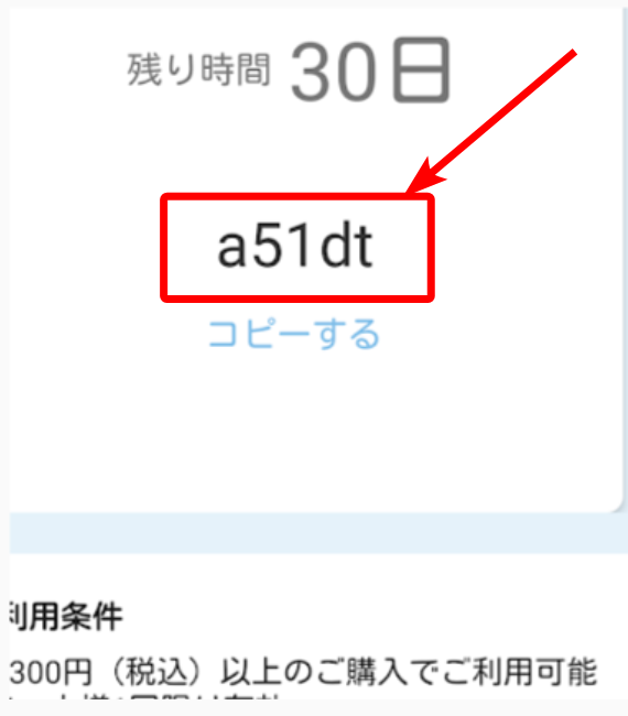 A. 公式アプリを初回ダウンロード後、アプリ内のクーポン案内に従って受け取ります(外部固定コードではなく付与型)。
