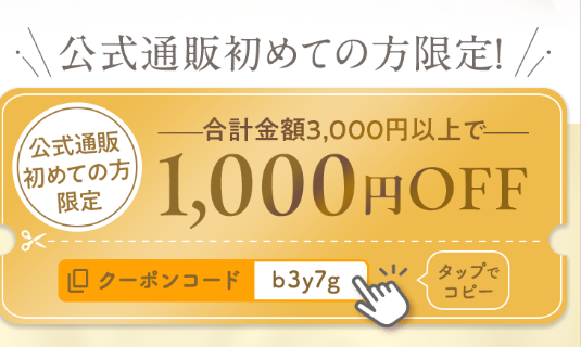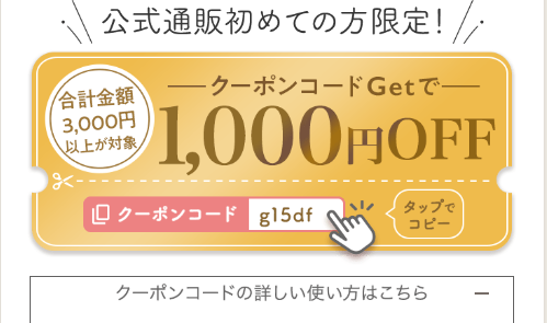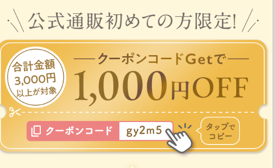 3.サイトを開くと、初回からつかえるクーポンコードの記載がありすぐ利用できます。