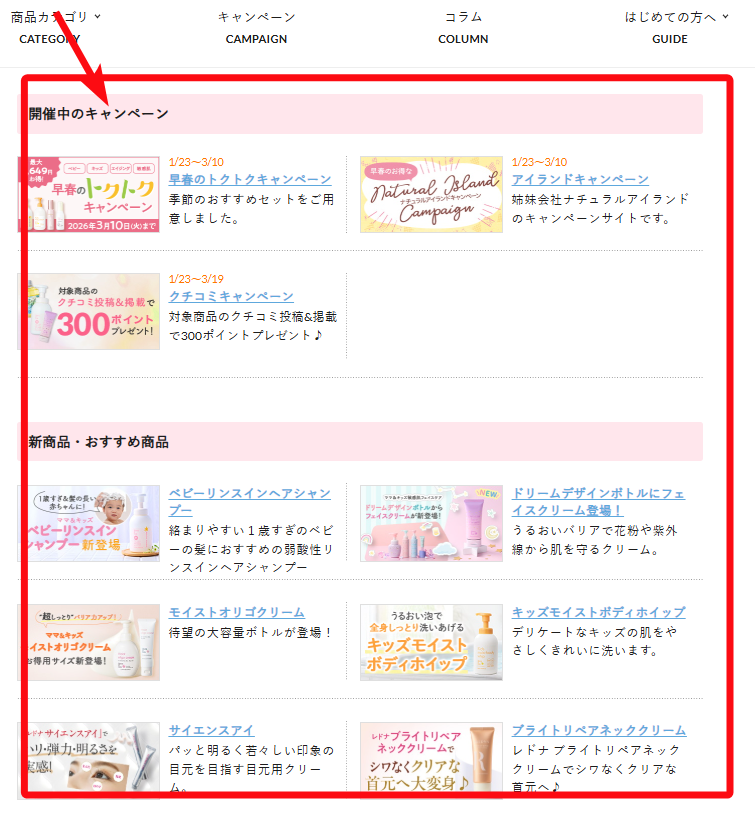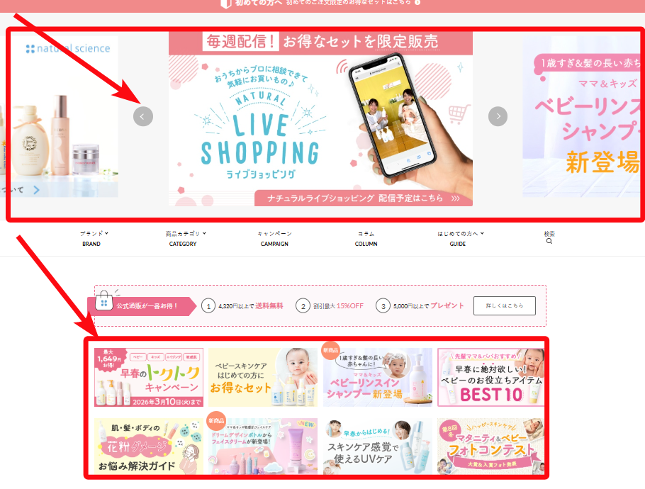 1.公式トップ「スライドバナー」で限定セットをチェック