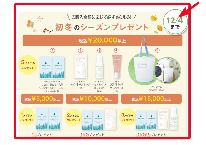 ◆5,000円以上の購入で、季節に合わせたミニスキンケアをプレゼント