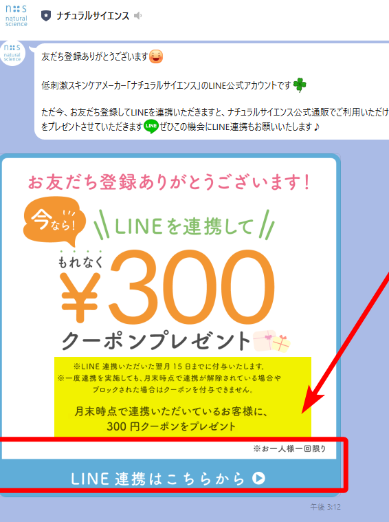 LINEと公式サイトのアカウントを連携すると上記クーポンコードを利用できるようになります。