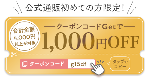 - 4,000円以上 → 初回1,000円OFFクーポンコード:g15df