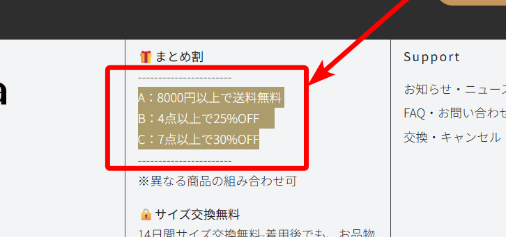【公式サイト限定】で無料返品交換ができる保証が付いています。