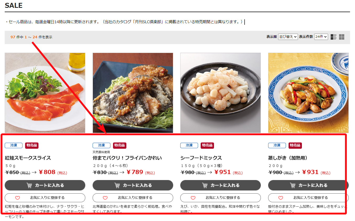 値引き商品更新は、毎週木曜日17時~17時30分頃です。
