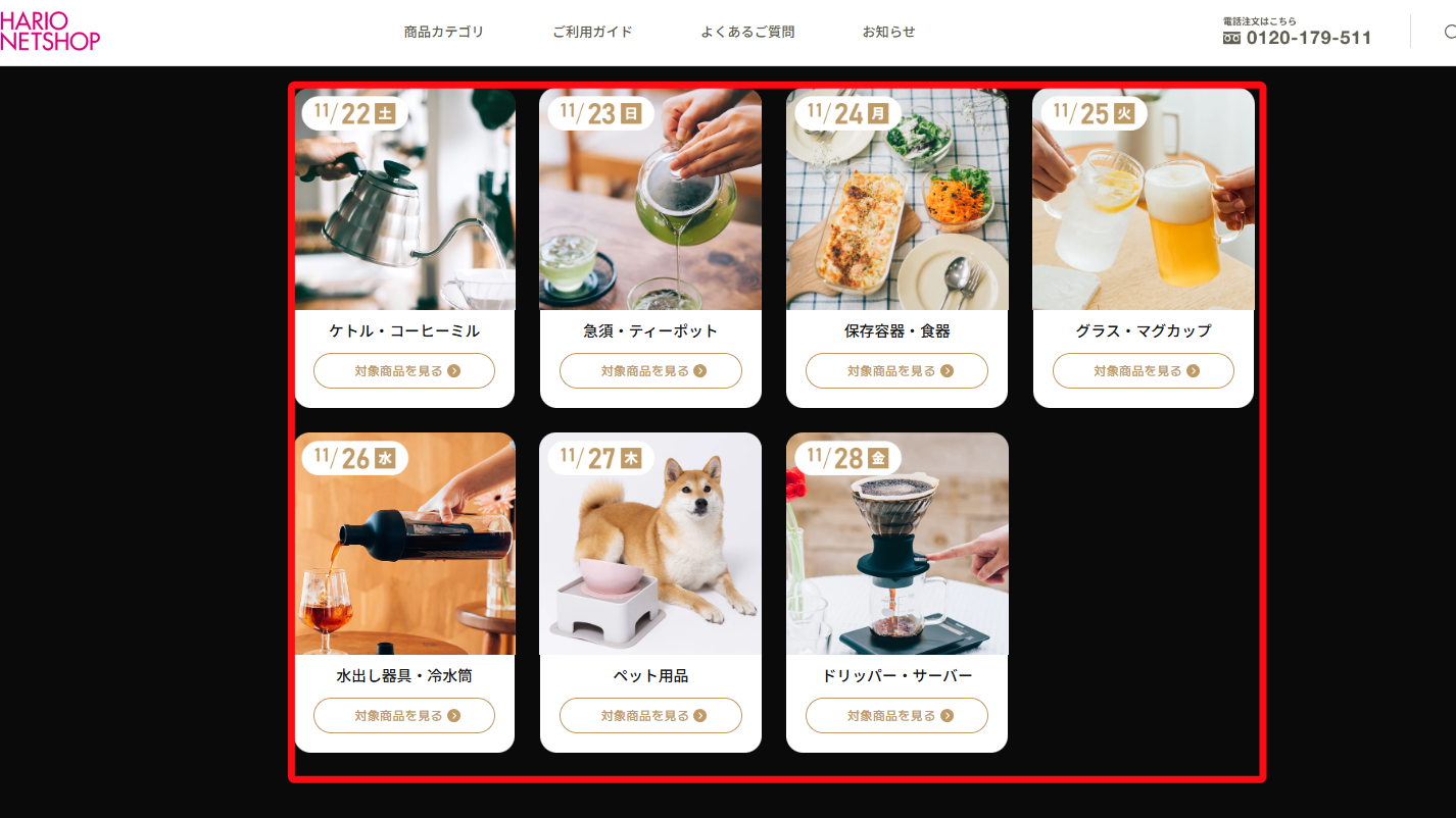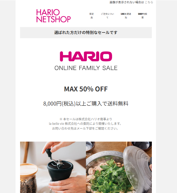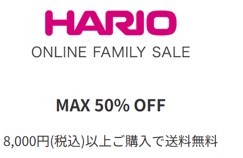 HARIOネットショップの会員限定セールは定期的に実施されており、