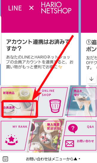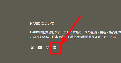 1.HARIOネットショップTOPページ最下部のLINEアイコンをタッチ!またはこちらからも登録可能