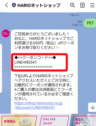 ・クーポンコード:LINEHNS541 (期限:不明)
