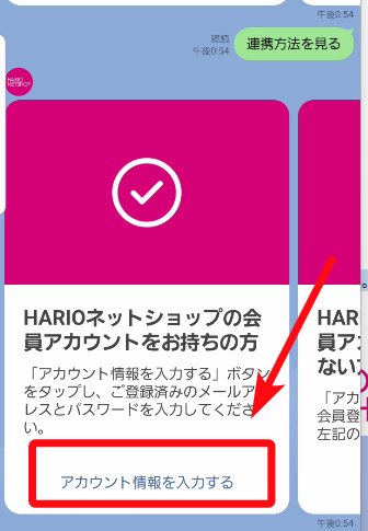 「アカウントを作成する」ボタンから会員登録>改めてトーク画面にもどり、上記の連携設定をします。