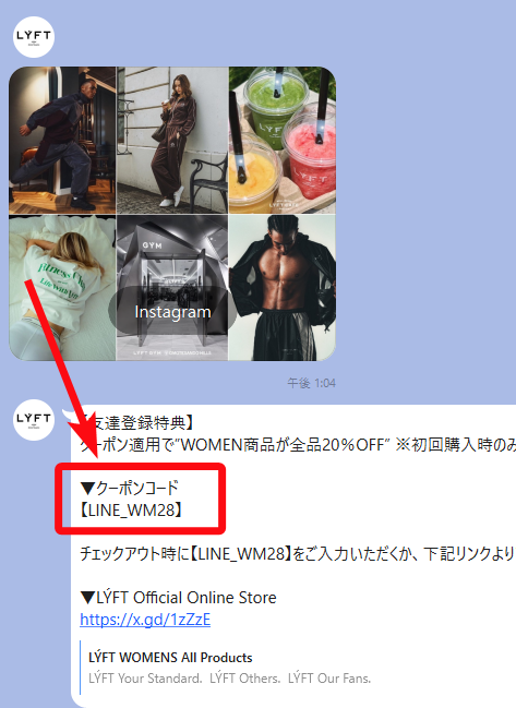 2.トーク画面にすぐ使える クーポンコードが表示されます