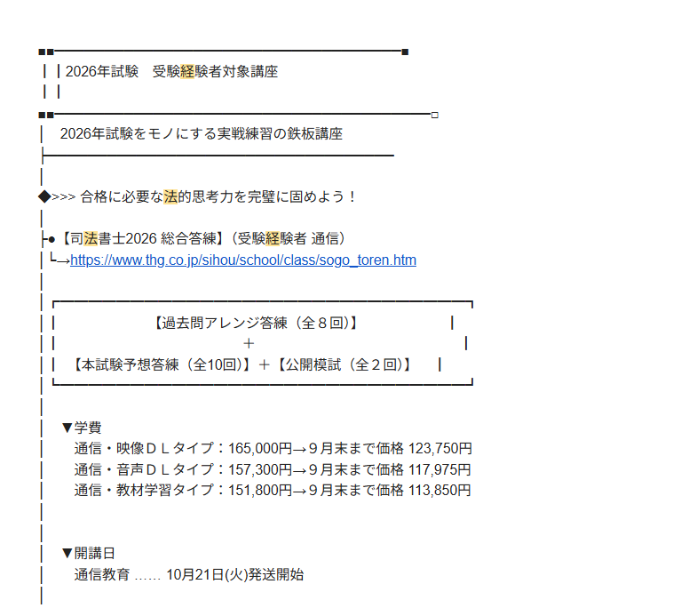 | 7 | 本科2026(基本講義のみ) | 全月期 | 354,200円 | 216,062円 |