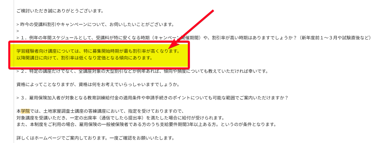 A4. 東京法経学院ではキャンペーン終了後1日程度で新しいキャンペーンが始まることが多いため、慌てず数日待つとさらに良い割引に巡り合えます。