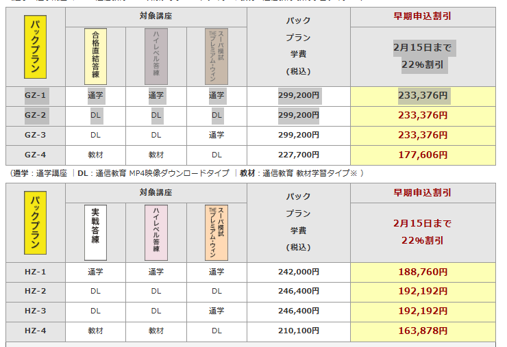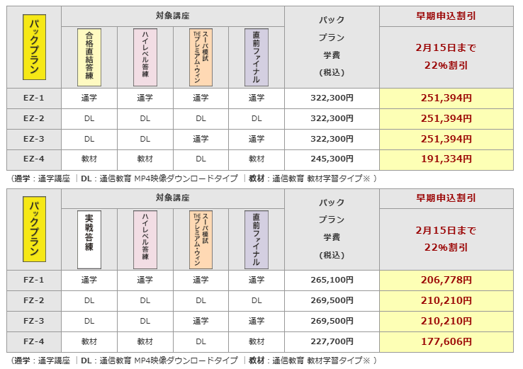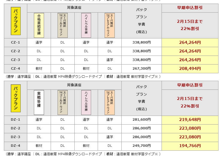 | 答練+科目別強化コース 映像ダウンロード | P07 | 144,650円 | 115,720円 |