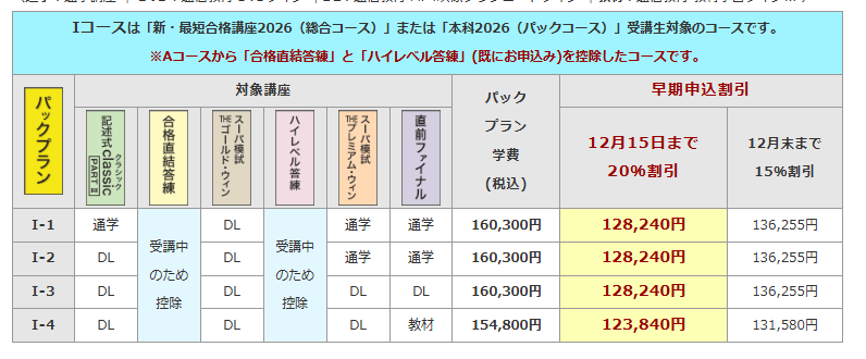 ◆対象コース:総合コース(ハイレベル答練含む)