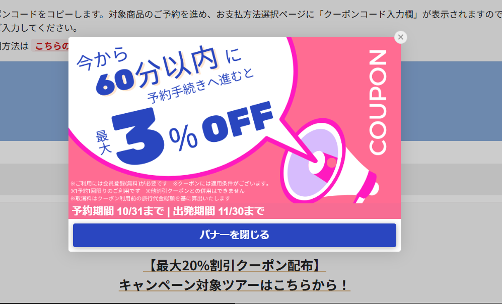 旅行商品の販売やクーポンの有効期限は各旅行会社の最新情報をご確認ください。