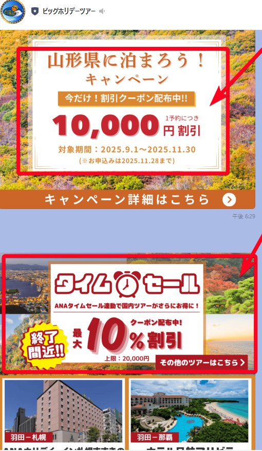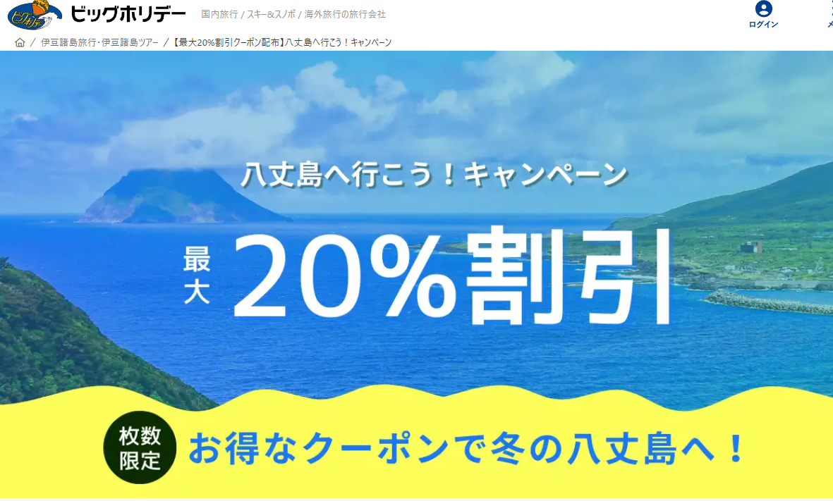 ビッグホリデーでは、国内ツアーのクーポンを発行しています。