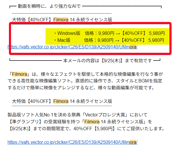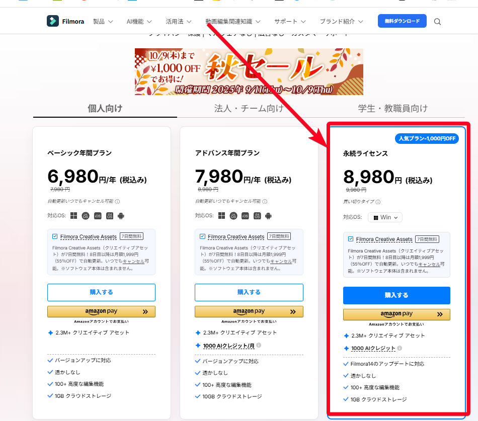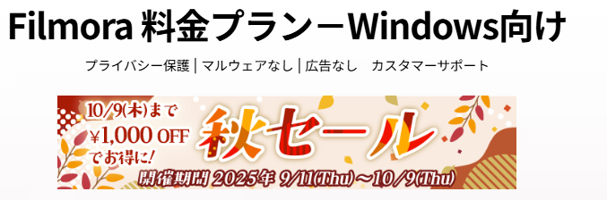 ・Filmora Max2,000円OFF 秋セール:10/9までほか