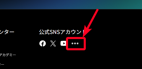 公式サイト最下部「公式SNSアカウント」の下の・・・をクリック