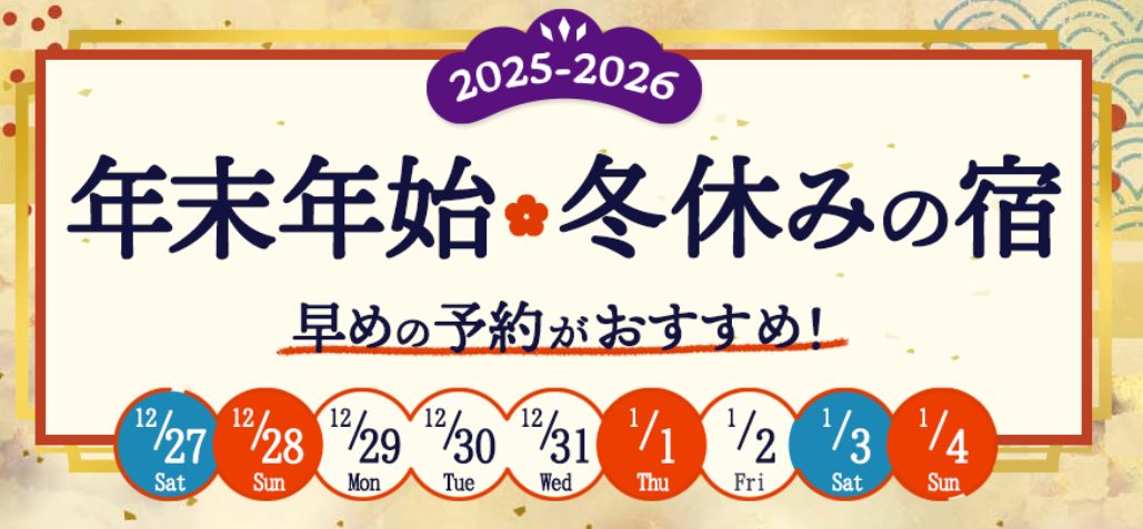 【早割キャンペーン】年末年始 冬休みの宿予約