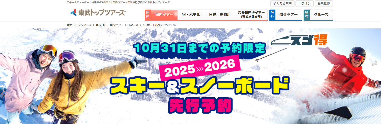 - 新幹線+宿泊セットが便利&お得な東武トップツアーズの「スゴ得」プランで予約可能