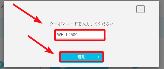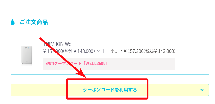A: 公式サイトの注文画面にある「クーポンコードを利用する」欄に入力してください。