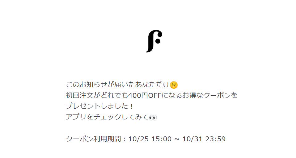 2025年10月25日15時08にメールマガジンで400円OFFクーポン付与の通知が届いています。