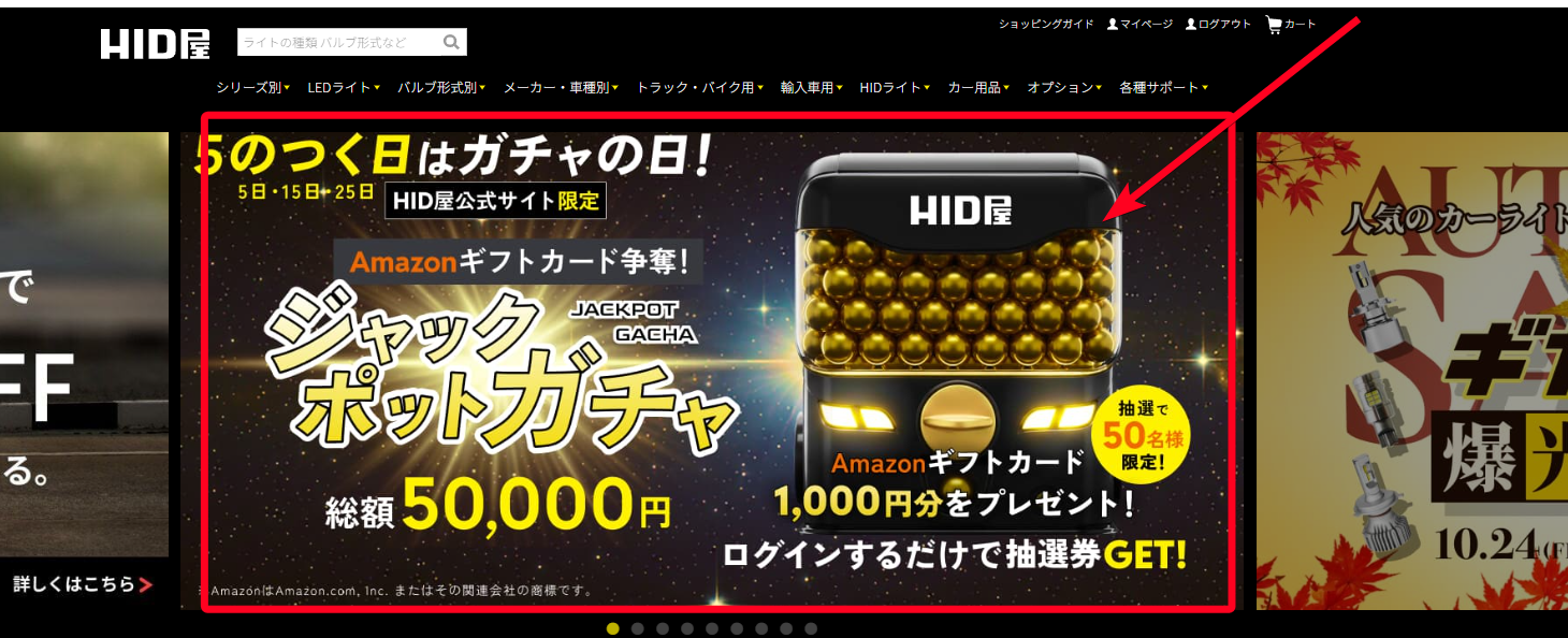 1.HID屋TOPページを少し下へスクロールし、「バックランプ」画像をクリック