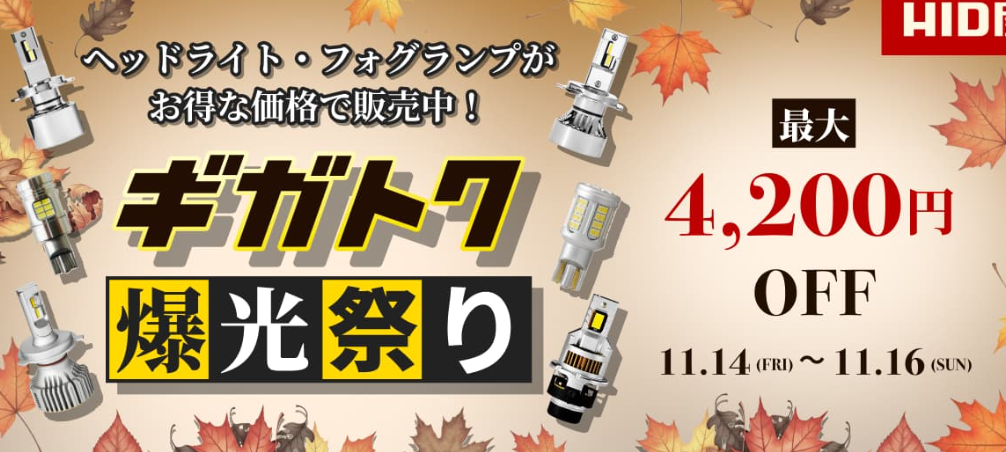 ・【最大4,200円OFF】ギガトク爆光祭り:11/16まで