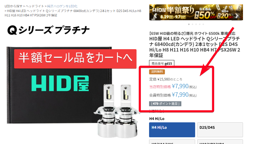 HID屋のqシリーズのセール品を調べる方法は