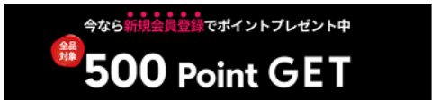 「会員登録500円ポイント」がマイページに付与されたので、購入時にクーポンと一緒につかえました。