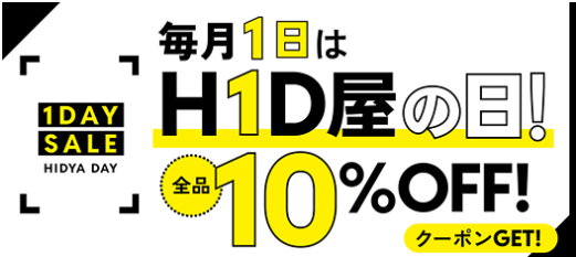 HID屋は毎月1日に「HID屋の日」で全商品10%OFFを実施。