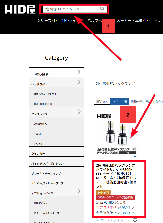 「2色切替LED バックランプ」とサイト内検索バーで検索 |