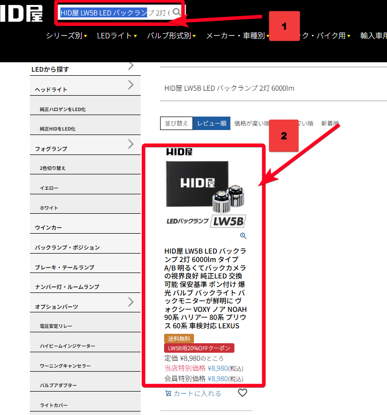 「LW5B LED バックランプ 2灯 6000lm」 とサイト内検索バーで検索 |
