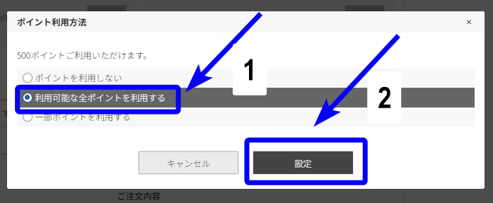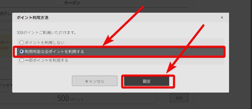 4.利用可能な全ポイントを利用するを選択し、「設定」をクリック