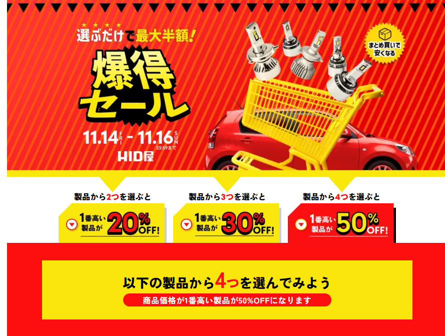 2025年11月現在のHID屋の「セール」や「クーポン」に関する最新情報を網羅的に調査。半額セールの入手方法、クーポンコード・ポイントの活用法、人気商品・シリーズごとに最安値で買う方法をお届け。※毎日公式サイトを訪問し、セール・クーポン情報を確認して更新しています。