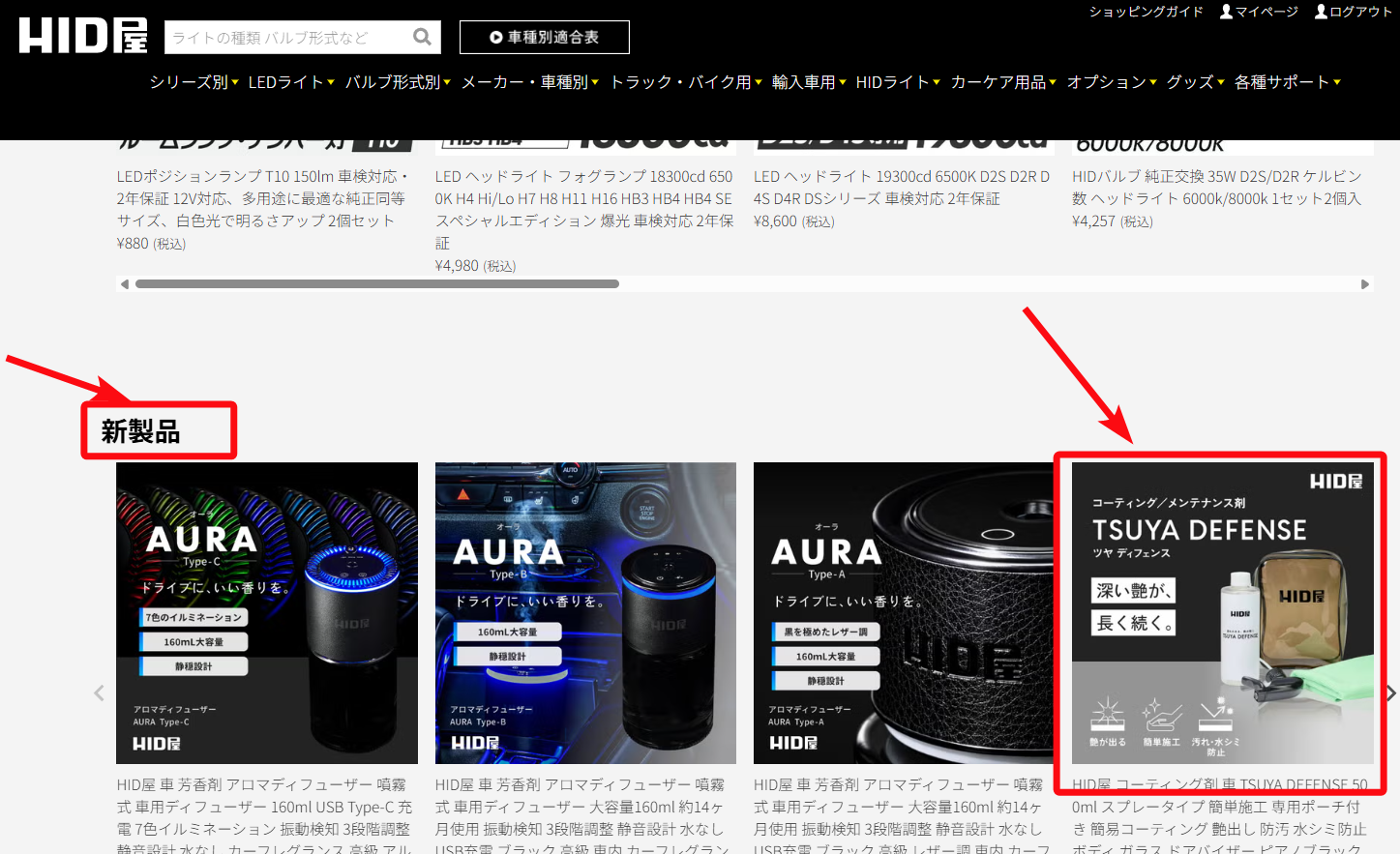 購入方法:TOPページ最下部の新製品コーナーを横スワイプで表示されます。