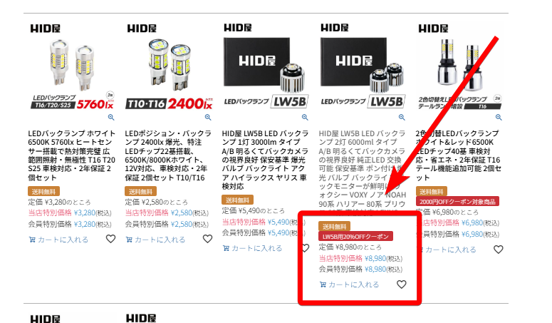 HID屋では、車種ごとにセール商品をチェックできます!