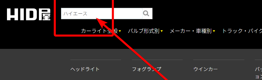 1.HID屋TOPページを検索バーに「2色切り替え」と入力して検索