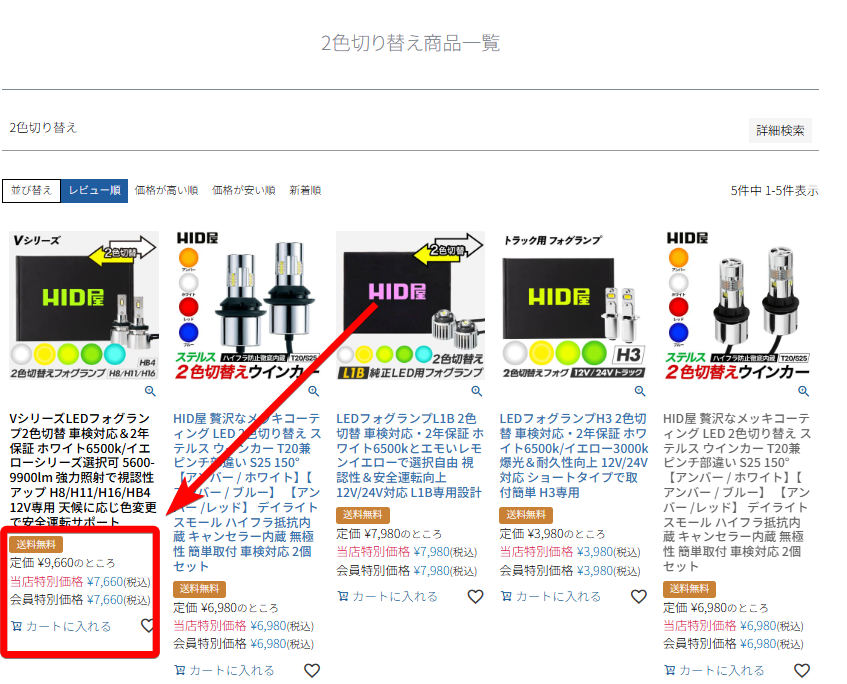 HID屋の2色切り替えライトのセール品を調べる方法は