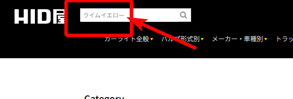 1.HID屋TOPページを検索バーに「ライムイエローなど」と入力して検索