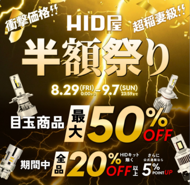 2025年10月現在のHID屋の「セール」や「クーポン」に関する最新情報を網羅的に調査。半額セールの入手方法、クーポンコード・ポイントの活用法、人気商品・シリーズごとに最安値で買う方法をお届け。※毎日公式サイトのセール・クーポン情報を確認して更新しています。