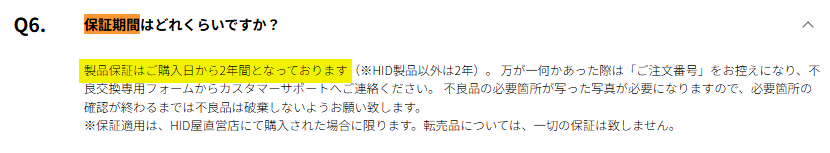 LED・HID全商品(一部除く)が2年保証。