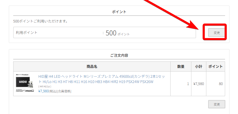 3.ポイントで「変更」をクリック