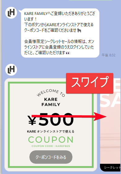 2.会員登録した後に表示されるクーポンバナーをスワイプ
