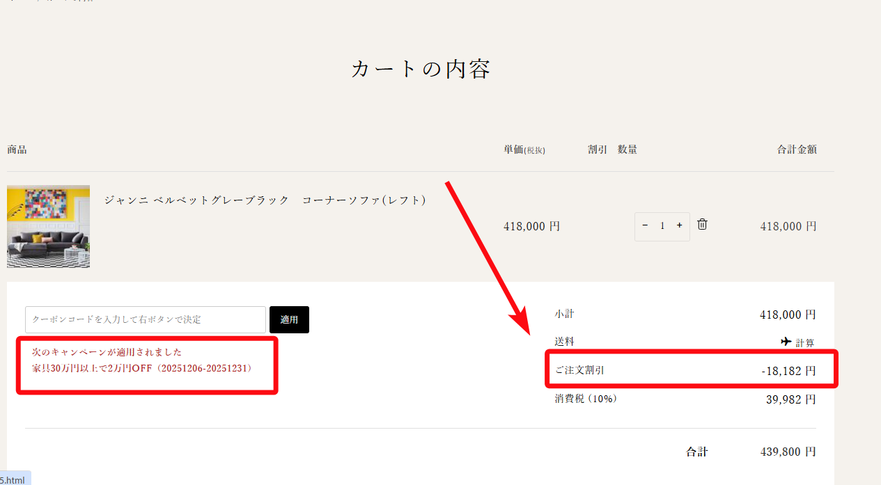 ・注文後にクーポンを適用することはできません。